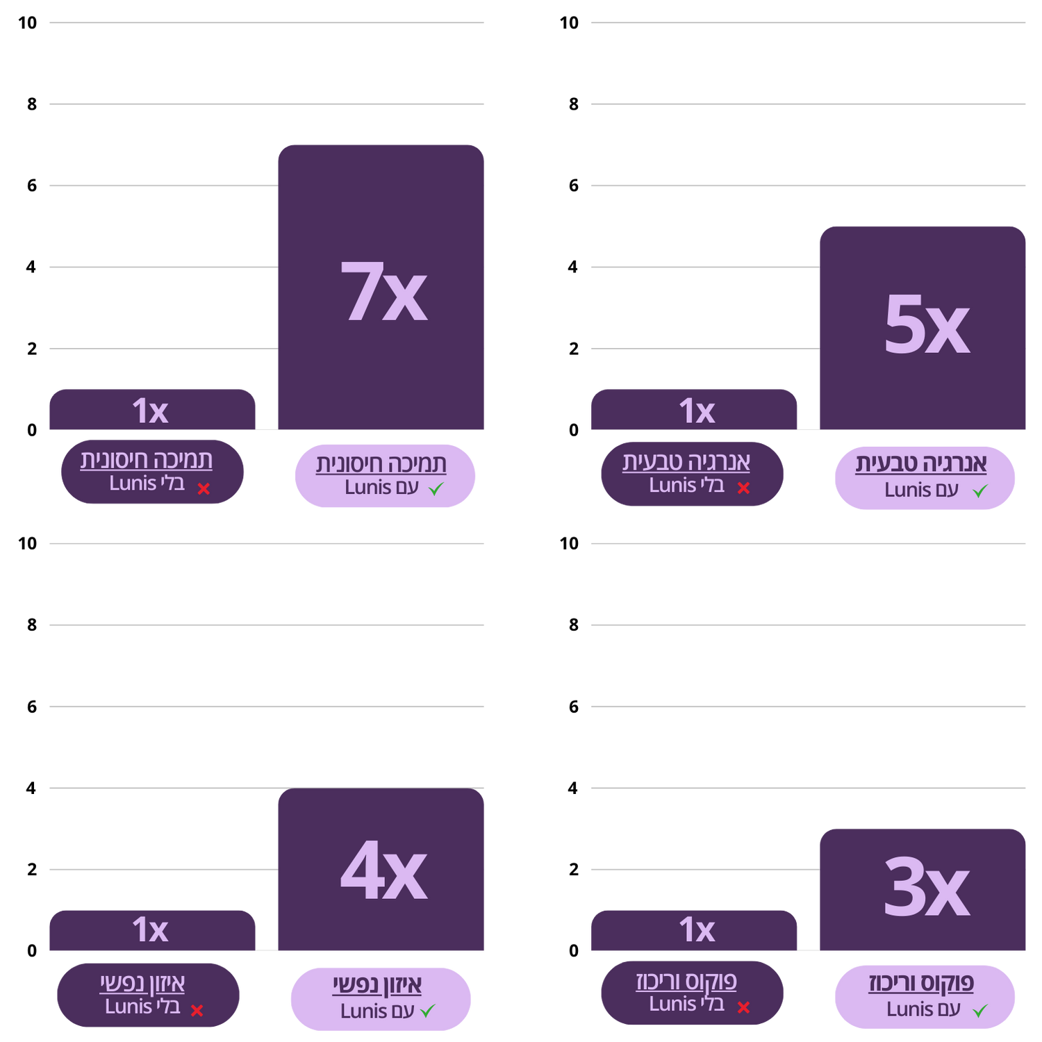 *אספנו נתונים לאחר מחקר מעמיק עם כ-40 לקוחות לאחר כחודש של ניסיון עם ה-Mush Gummies שלנו, אלו התוצאות: