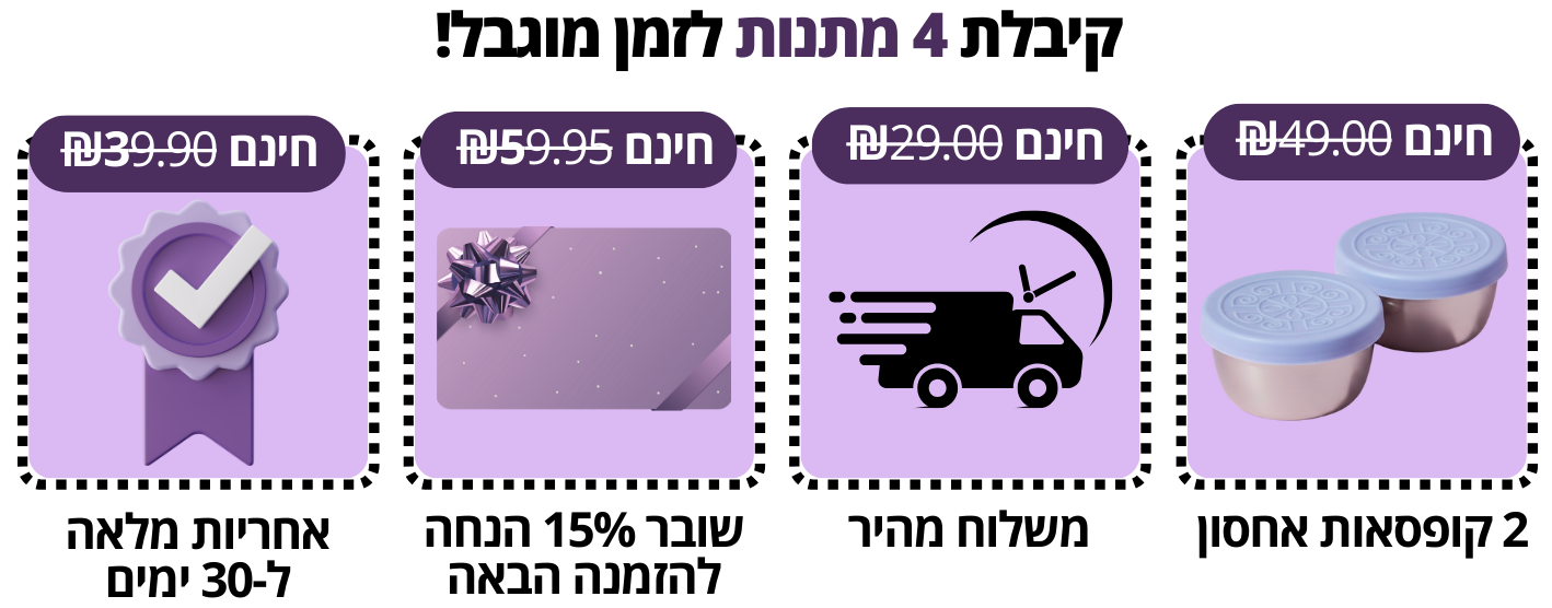 - אחריות מלאה ל־30 ימים - בחינם.